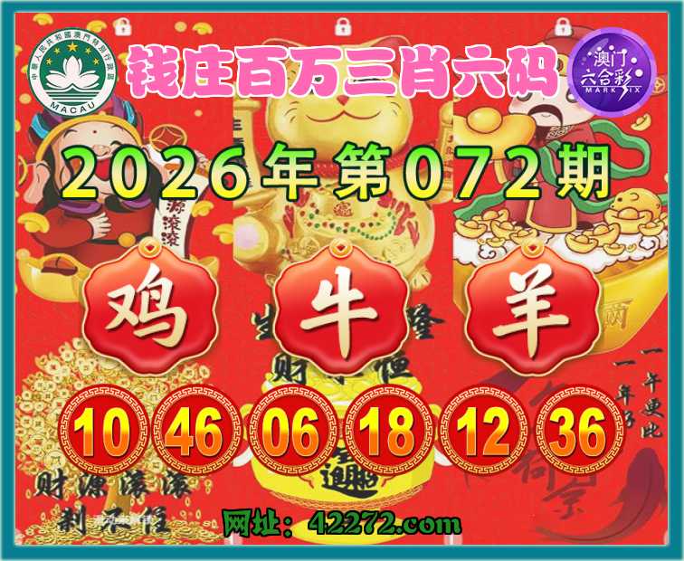 072期:《钱庄百万》 三肖六码【鸡牛羊】开:鸡46准
